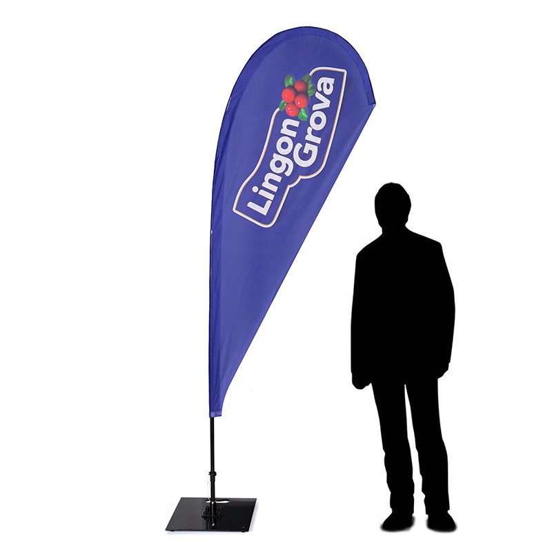 Beachflagget passer perfekt til ulike utendørsarrangementer men fungerer også godt på messer. Flagget er middels stort og den stramme duken gjør budskapet synlig uavhengig av vær og vind.