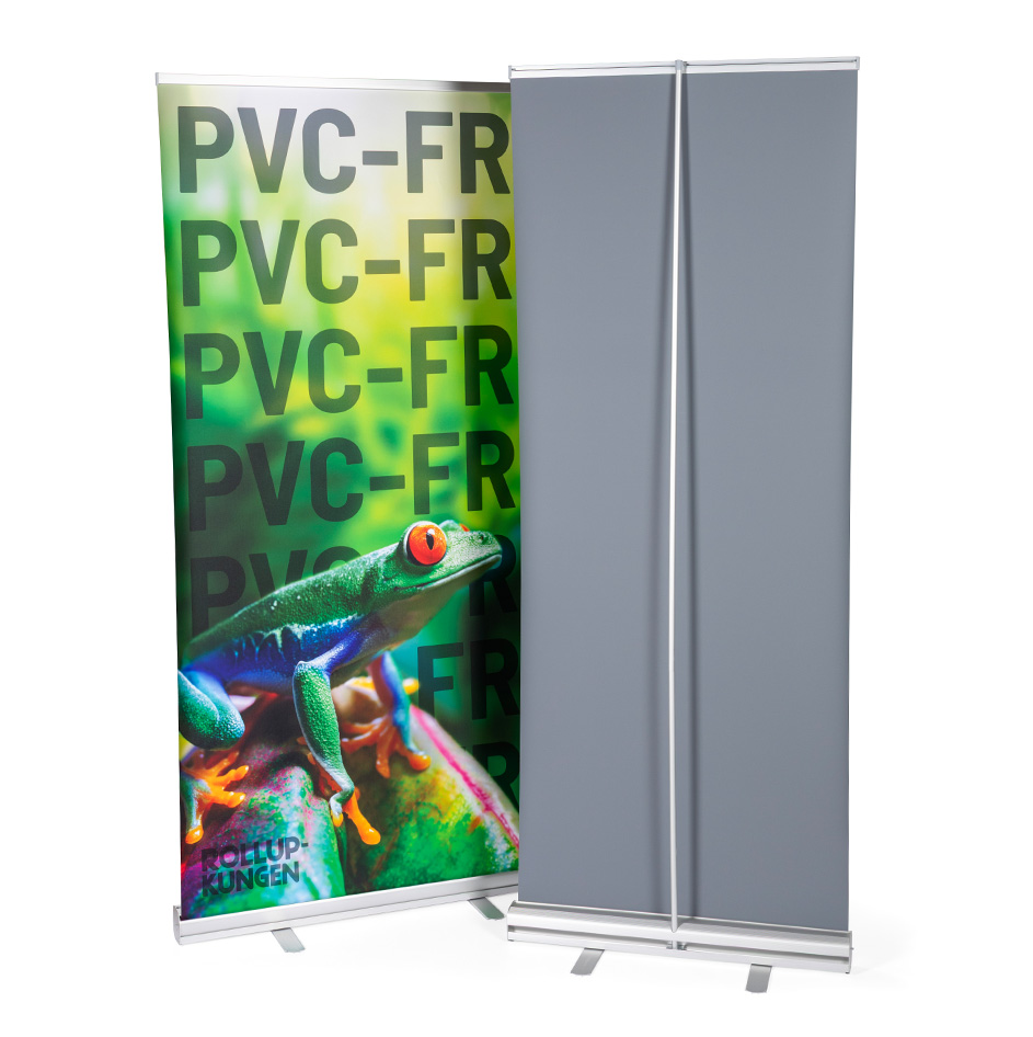Vi har byttet materiale til Grey Back, et moderne og PVC-fritt materiale. Dette er en del av vårt arbeid for å redusere miljøpåvirkningen uten å gå på kompromiss med utseende eller holdbarhet. Materialet brukes nå til alle våre rolluper og plakater.