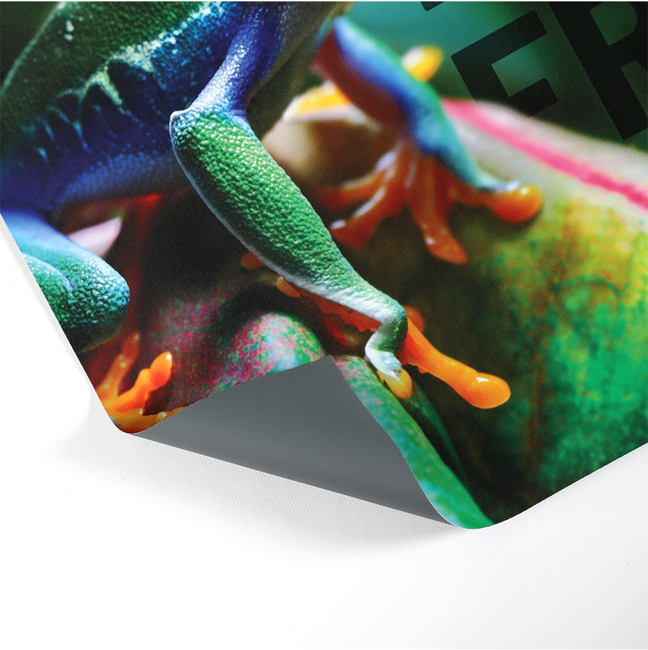 Grey Back Fabric har en grå bakside som bidrar til å forhindre lysgjennomslipp. Det betyr at motivet vises tydelig og med korrekt fargegjengivelse selv i sterkt lys. Materialet er dessuten mer matt enn vårt tidligere materiale, noe som gjør at fargene gjengis med høy detaljrikdom og mindre gjenskinn og refleksjoner.