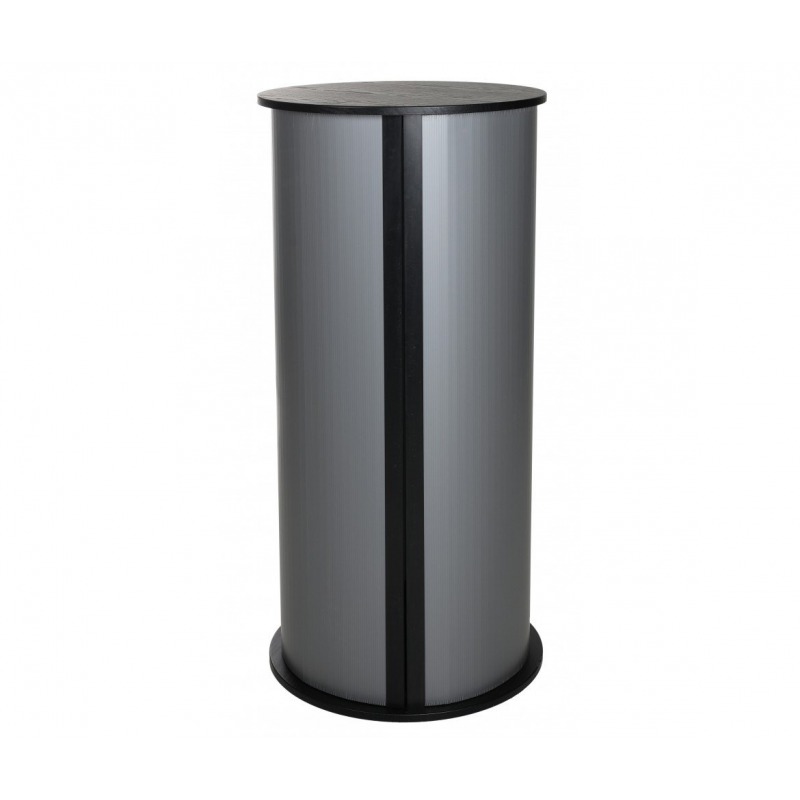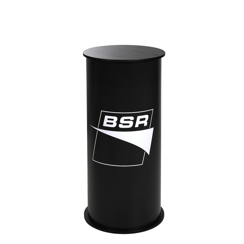 Messebord Basic Rund er et praktisk og prisgunstig messebord i klassisk design med rund form. Bordet monteres enkelt uten ekstra verktøy. Monteringsbordet leveres komplett med 1 stk hylleplate, vinylduk med ditt budskap og en svartlakkert toppplate i tre. Du får også med to praktiske bærevæsker slik at du enkelt kan bære med deg hele pakken.