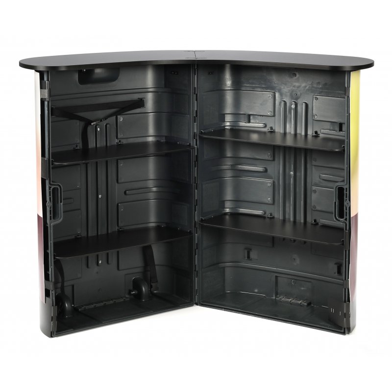 For enkel transport har messebordet en hjulforsynt underside og praktiske håndtak, noe som gjør det enkelt å flytte mellom ulike steder. I tillegg har det et solid oppbevaringsrom som gjør at du kan ha alt du trenger lett tilgjengelig.